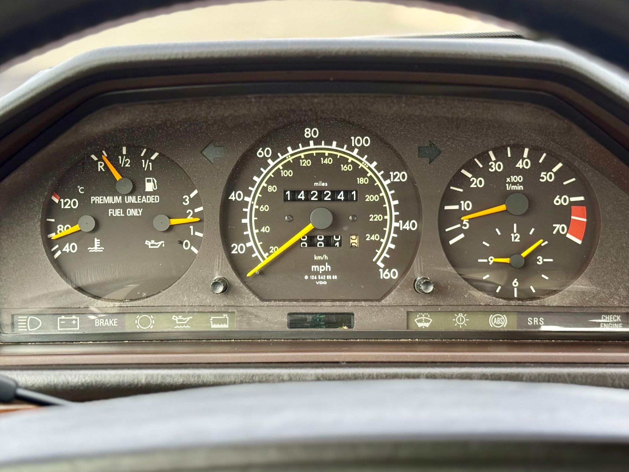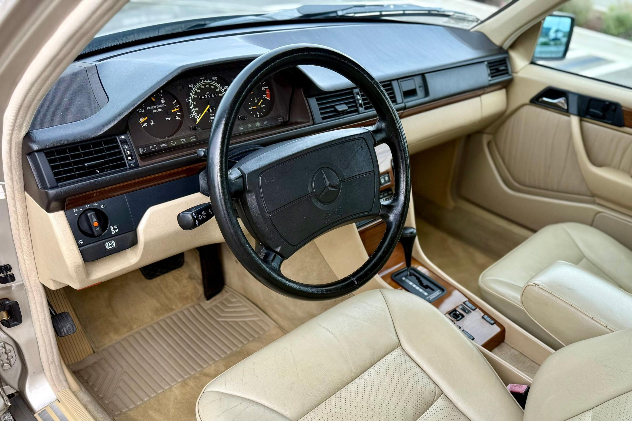 The W124 Mercedes-Benz E-Class is an iconic model with trademark boxy styling, a nice interior, and the excellent build quality Mercedes-Benz was known for in its era. This particular 300E is finished in Smoke Silver Metallic – and it features some nice equipment like 15-inch wheels, a sunroof, leather upholstery, and power-adjustable front seats.